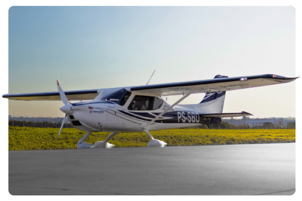 Referência mundial no treinamento de pilotos, o Cessna 172 combina estabilidade, conforto e eficiência em voo.